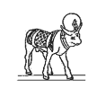 Darst.: geschmückter, schwarzer Stier mit dreieckigem